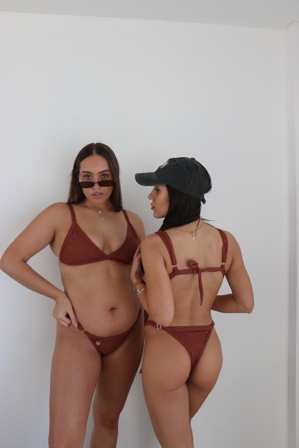 Corpiño triangulo fijo con breteles regulables, espalda para atar y tasas desmontables.Colaless regulable.TEXTURADA