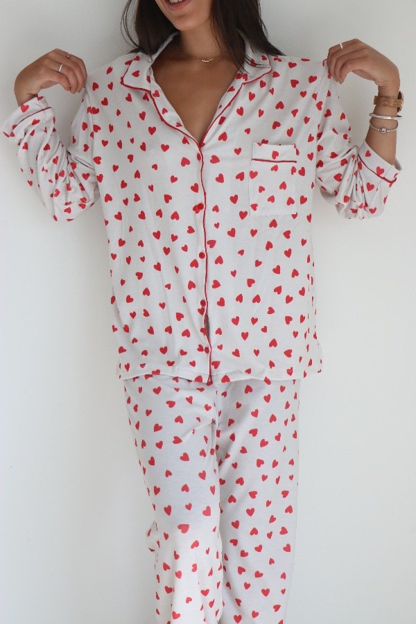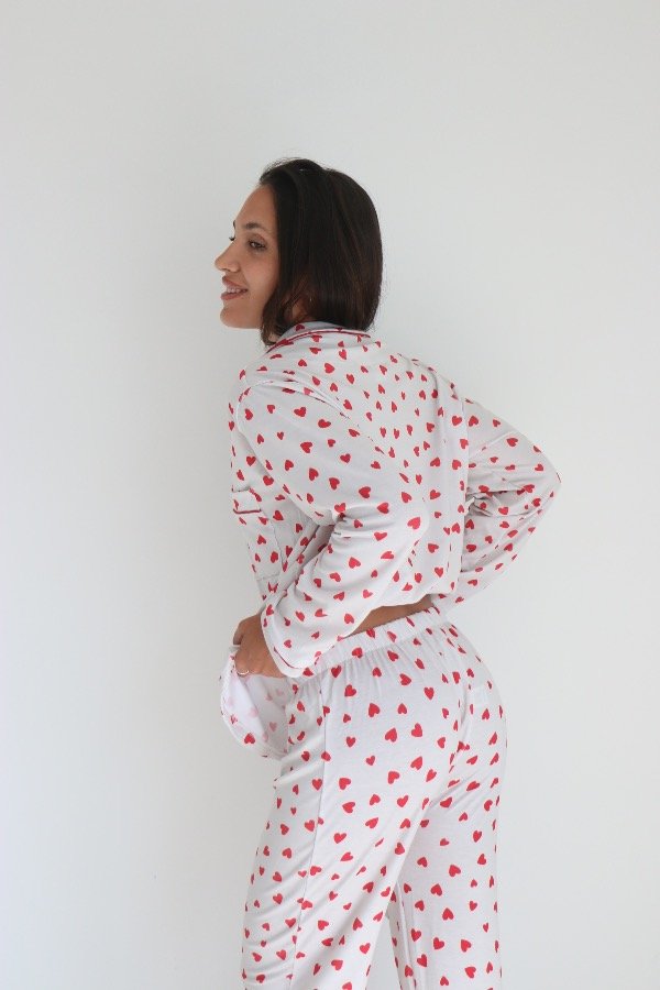 Pijama camisero (cuello, bolsillo en la parte delantera y botones) manga larga con pantalón
