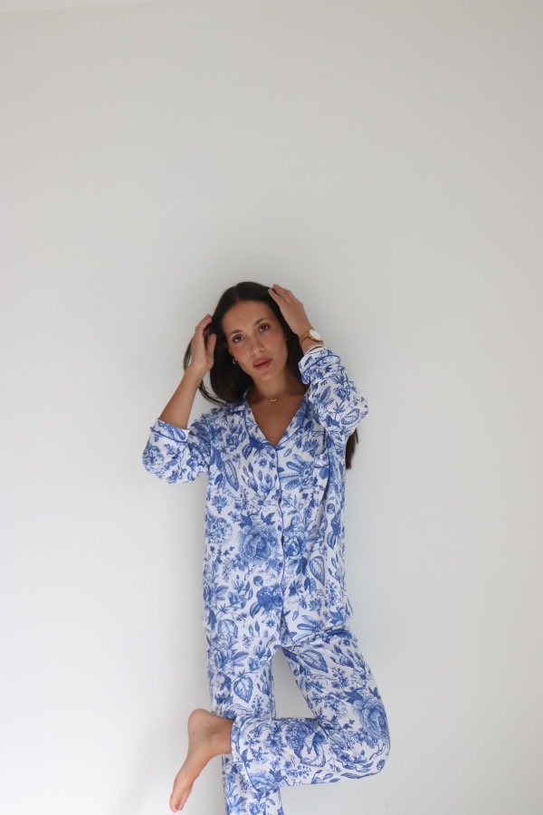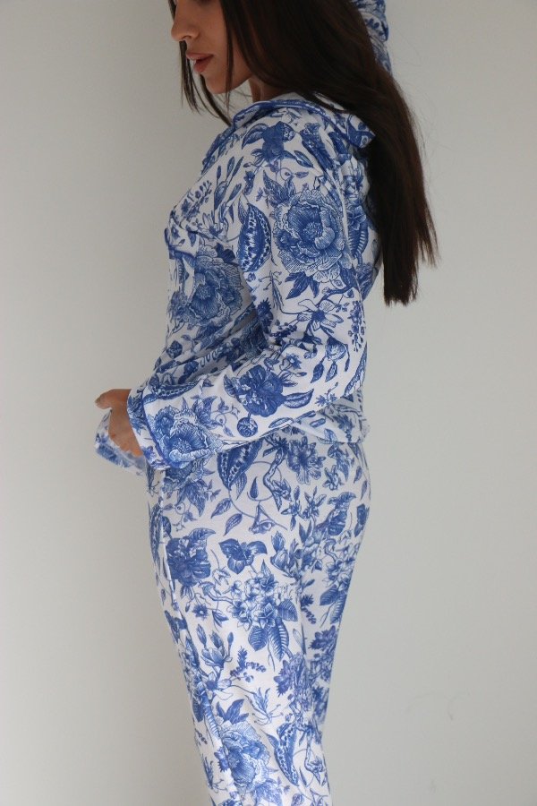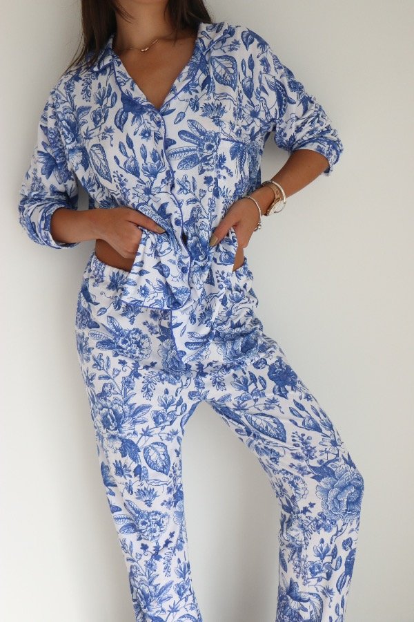 PIJAMA CAMISERO FLORES CELESTES / EN STOCK