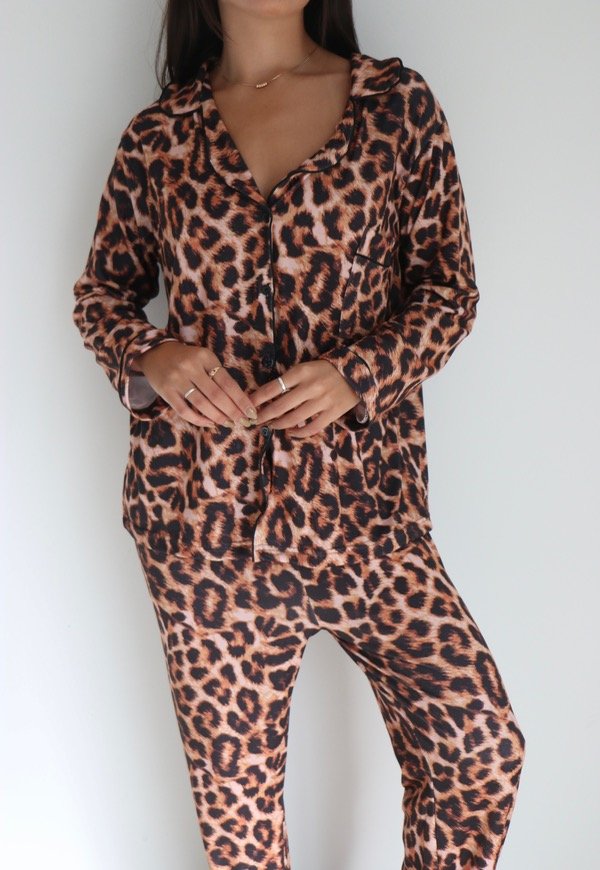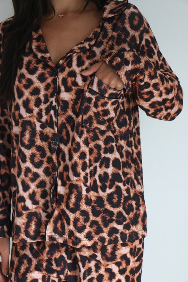 Pijama camisero (cuello, bolsillo en la parte delantera y botones) manga larga con pantalón